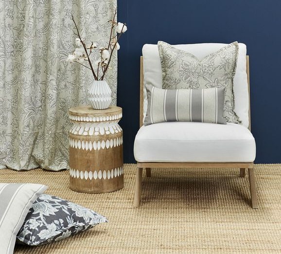 A dual purpose fabric, it's suitable for light duty upholstery and cushions as well as curtains and roman blinds.